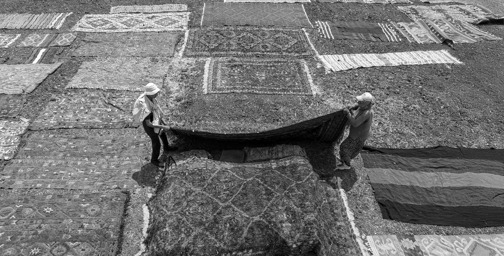 Carpet or rug making is an ancient form of art originating from Central Asia. As part of an extraordinarily authentic culture, carpets and rugs used to be exclusively non-trade products and were only made for the use of people in a mesmerizing process. Traditionally the finest sheep wools are sheared and made into threads by women.